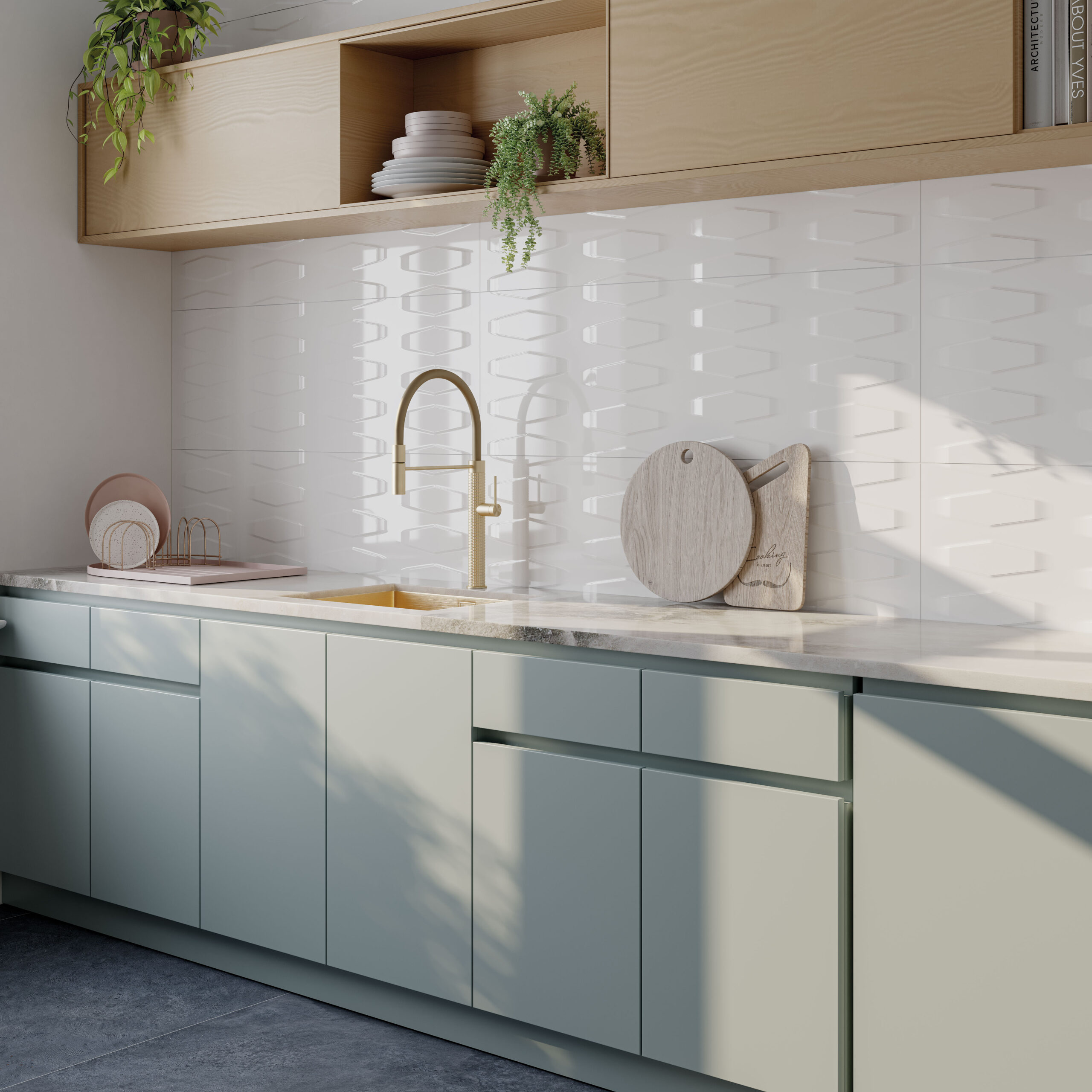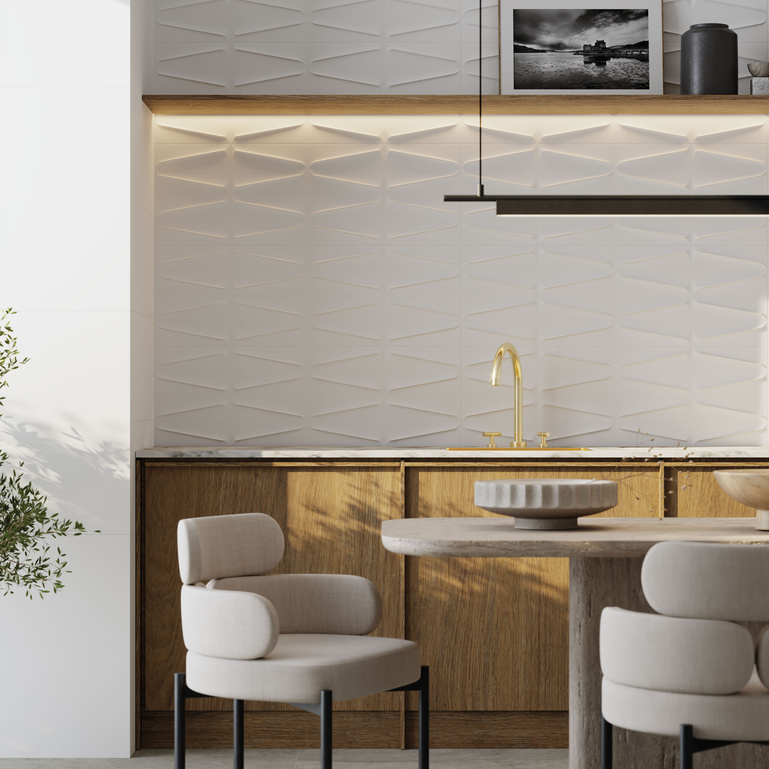 Blancos rect es una serie capaz de impregnar de luz, limpieza y elegancia a los espacios gracias a su base en color blanco puro. Acompañada de una gran variedad de opciones decorativas en relieve de pasta blanca con diferentes patrones, volúmenes y texturas, ofrece un amplio abanico de posibilidades de combinación.